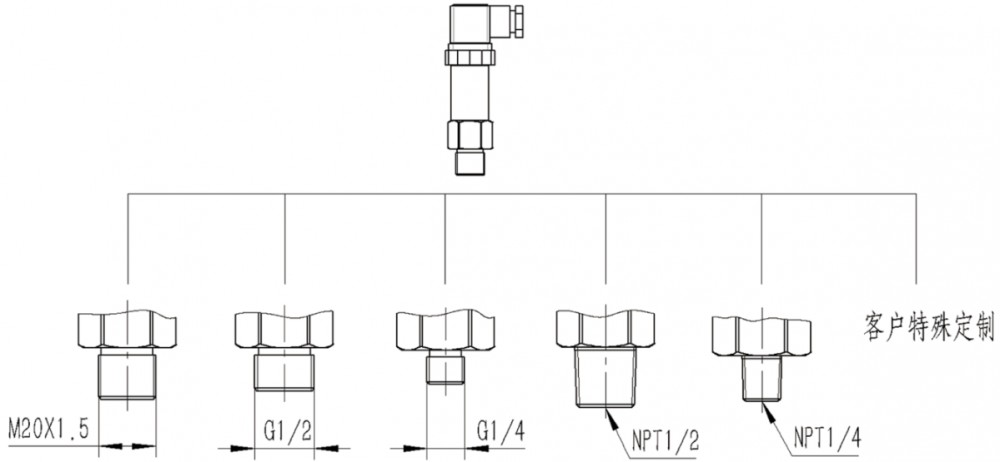 Product Introduction: Suitable for: Pressure measurement of air, water, steam, pipeline pressure, and fluid liquids in applications such as Construction Machinery, Nitrogen Generator, Air Compressor, Hydrogen-Oxygen Generator, Hydraulic Equipment, Central Air Conditioning Refrigeration Unit, Pipeline Fluid, Diesel Generator, Water Treatment Equipment, Laboratory Instrument, Refrigerated Air Dryer, Purification Equipment. Features: High accuracy, good stability, compact size and light weight (50g), no moving parts, shock resistant, vibration resistant, reverse polarity protection, easy installation, good sealing, proprietary leak-free technology. Performance Parameters: Measuring Range: -100 - 0 KPa / 0 - 100 MPa Power Supply: 12.5-36VDC Output Signal: 4-20mA Process Connection: G1/4 external thread; 1/2 NPT external thread; M20X1.5 external thread; G1/2 external thread. Other process connections available upon request, customer must provide standard and drawings. Temperature Range: -20 to 85°C Protection Rating: IP65 Electrical Connection: GDM 4-pin quick plug Over pressure Limit: 1.5 times full scale Burst Pressure: 3 times full scale Filling Fluid: Silicone Oil Housing Material: 304 stainless steel Diaphragm Material: 316L stainless steel, Hastelloy C-276, Monel, Tantalum |