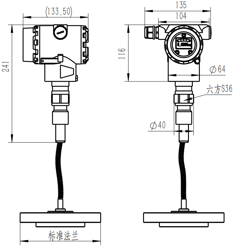 Product Introduction: Suitable for: level and pressure measurement of liquids, gases, crystallizing, and viscous media in industries such as: Chemical, Petroleum, Oil Refining, Thermal Power, Coking, Steel, Metallurgy, Fertilizer, Wastewater Treatment, etc. Features:Analog output signal, modular design, 1-year warranty provided, 180°rotatable LCD head, 5-digit LCD display head; High pressure resistance, high temperature resistance. Performance Parameters: Measuring Range:0 - 2 MPa Supply Voltage Range:12.5 - 36 VDC Output Signal:4-20mA / 4-20mA+HART Process Connection: Standard flange, customer must provide flange standard and dimensions. Full Scale Accuracy: 0.25% F.S, 0.5% F.S Ambient Temperature: -20 to 85°C Protection Rating:IP66 Explosion-proof Rating: Exia IICT4 and Exia IICT6 Electrical Connection: M20X1.5 internal thread Over pressure Limit:Static pressure resistance 13 MPa Housing Material: Low-copper aluminum casting Filling Fluid: Silicone Oil Paint Color: Blue-Grey two-tone high-adhesion polyester paint, durable, non-cracking, non-fading Diaphragm Material:316L Stainless Steel, Hastelloy C-276, Monel, Tantalum |
